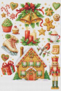 gingerbread cottages, nutcrackers, bells, ribbons and the warm glow of winter candles into a gentle festive tapestry.
